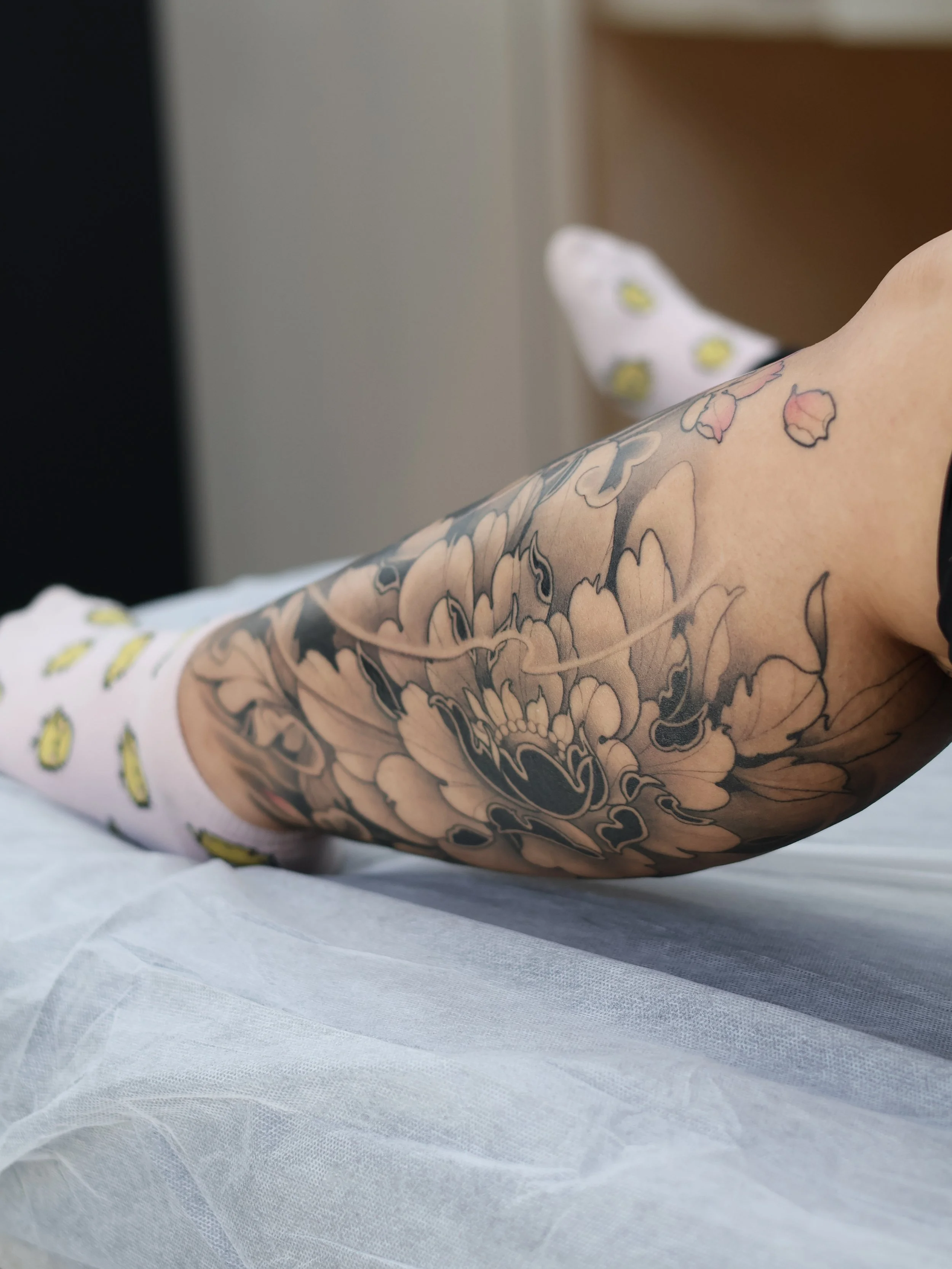 In my tattoo design process, I prioritise understanding and honouring each individual's unique body. Every body is different, and I deeply respect the importance of considering its shape, contours, and personal preferences when crafting meaningful tattoos. By taking into account these individual characteristics, I strive to create designs that harmonize seamlessly with the natural form, ensuring not only aesthetic appeal but also comfort and confidence for my clients. Your body is your canvas, and my aim is to collaborate with you in bringing your vision to life in a way that feels authentic and empowering.